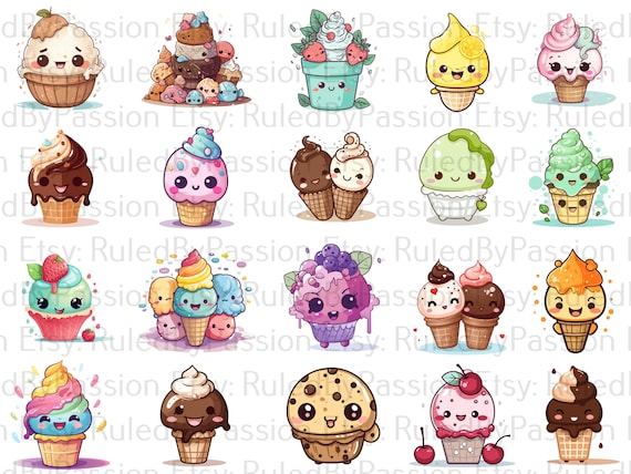 Cute Kawaii Ice Cream Clip Art Pack 5 Stickers Planner Etsy
